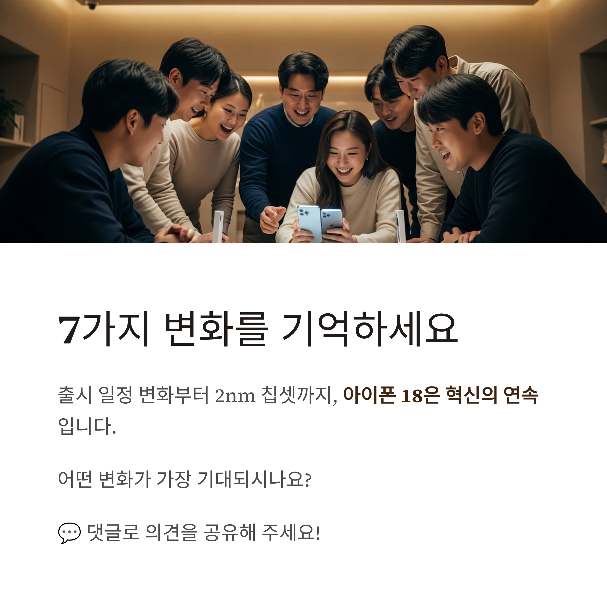 여러분은 어떤 변화가 가장 기대되시나요? 댓글로 여러분의 의견을 자유롭게 공유해 주세요! 다음 포스팅에서는 아이폰 18의 또 다른 흥미로운 소식들로 찾아오겠습니다.