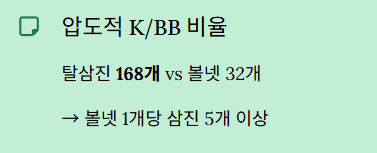 2025시즌 170이닝을 던지는 동안 볼넷은 단 32개에 불과했고, 탈삼진은 무려 168개를 잡아냈어요.