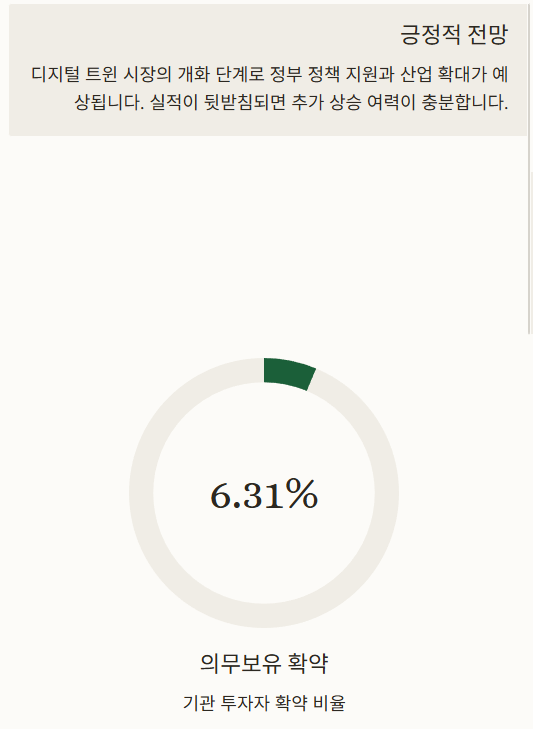 앞으로의 전망은 디지털 트윈 시장의 성장과 정부 정책 지원에 힘입어 중장기적으로 긍정적이라고 해요.
