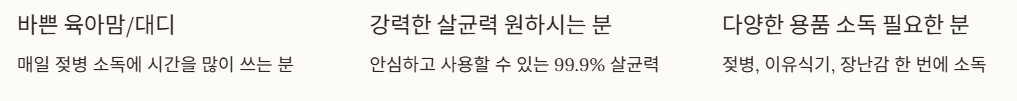 바쁜 육아 중에 젖병을 삶고, 말리고, 또 보관하는 일련의 과정들이 얼마나 힘들었나요?