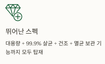 대용량에 99.9% UVC LED 살균, 건조 및 멸균 보관 기능까지!
