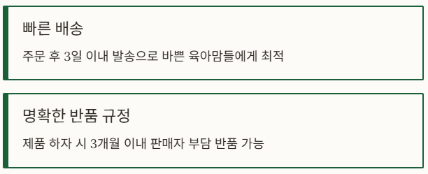 주문 후 3일 이내 발송되는 빠른 배송 시스템도 바쁜 육아맘들에게는 큰 장점이죠.