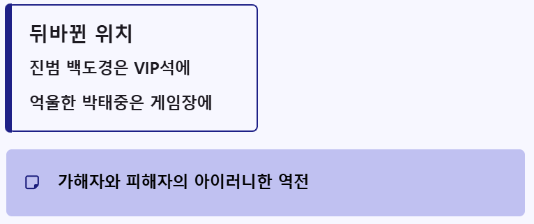 억울하게 누명을 쓴 사람과 진짜 죄를 지은 사람의 위치가 완전히 뒤바뀐 이 아이러니한 상황이 정말 많은 생각을 하게 만들더라고요.