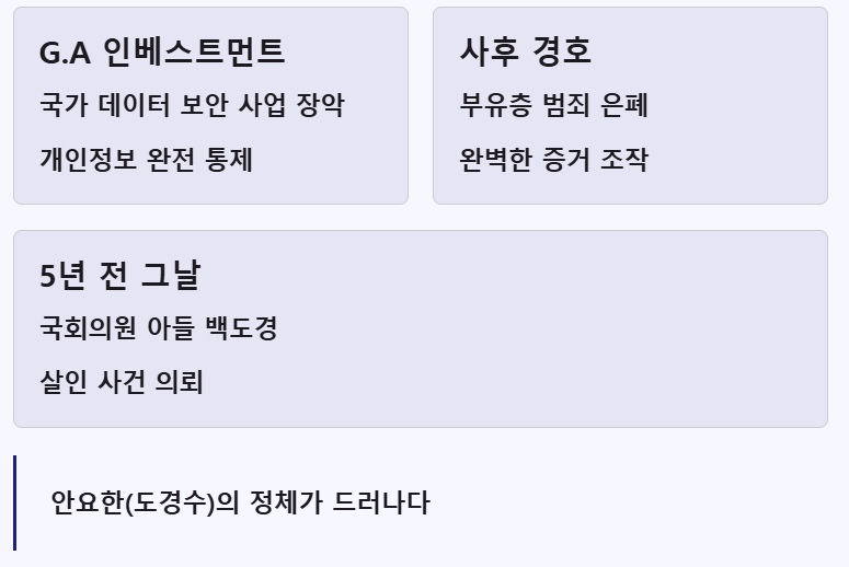더 기가 막히는 건, 진짜 범인인 백도경이 바로 그 VIP석에서 아무렇지 않게 이 죽음의 게임을 관람하고 있다는 사실이에요.