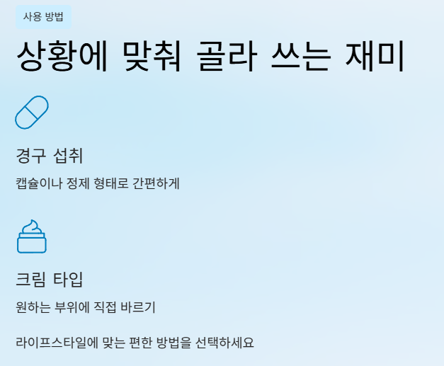 요즘은 단순히 먹는 것뿐만 아니라 직접 바르는 형태도 인기가 많더라고요.