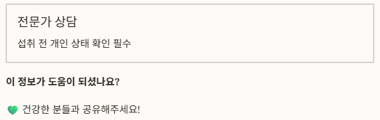 개인의 상태에 따라 반응이 다를 수 있으니 중요한 결정이나 섭취 전에는 반드시 전문가와 상담하여 본인에게 맞는지 확인하는 절차를 거치시길 권장해 드립니다.